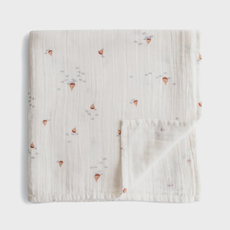 Organic Cotton Muslin Swaddle Blanket | Boats